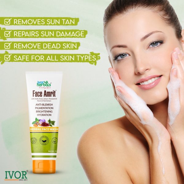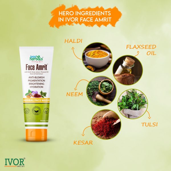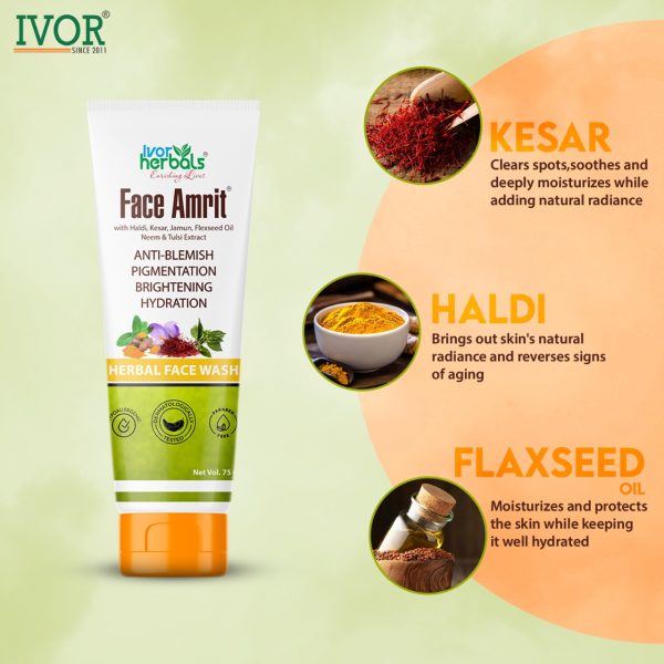 Face Amrit Face Wash – Herbal Ayurvedic Saffron Formulation with Active Ingredients; Haldi Extract, Kesar Extract, Jamun Extract, Neem Extract, Tulsi Extract, Flaxseed Oil