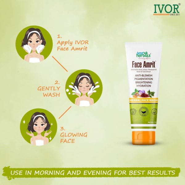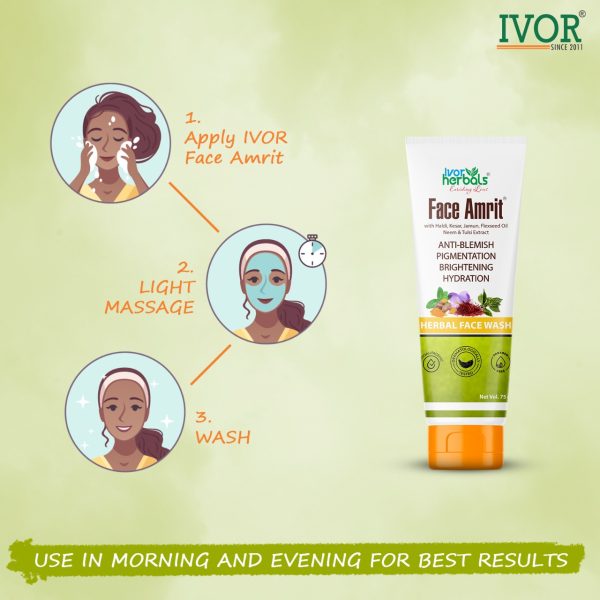 Splash water on face, take a small amount of FACE AMRIT FACE WASH on your palms & massage gently on face in circular motion. Rinse with clean water. Use twice daily for better results.